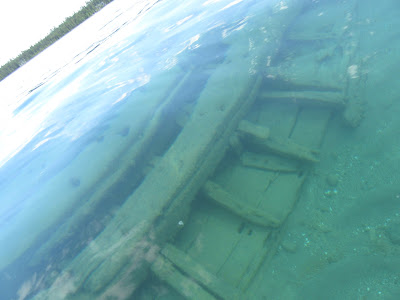 An update from last evening Mike won 2 games of cribbage. We were up at 7 A.M. reviewing the weather apps. The window at 10 A.M. this morning where the winds were suppose to decrease changed the winds are now staying up with gusts to 20 miles per hour. Mike and I both concluded that we were going to stay in Presque Isle today. We went for a walk to the New Presque Isle Light for a total of 3.18 miles. Mike and I worked on a few little jobs. We walked over to the Old Presque Isle Light to check out the giftshop but didn't find anything to purchase. In the afternoon we headed to the flying bridge for cocktails. When the sun was out it was very hot but clouds moved in and the winds were shifting. Very quiet afternoon. At 5 P.M. Mike mentioned launching the dinghy to cool off. I mentioned to Mike an e-mail that we had received from Jarrod our boater friend from Bay Harbor. Jarrod had e-mailed us about a shipwreck close to our location. Mike and I loaded up the dinghy and headed out. We found the buoy that Jarrod had mentioned without any issues. What an awesome find. The dinghy was in 6 feet of water with no issues seeing the wreck. Not only did we find the wreck but we enjoyed the cool breeze. Mike did some research finding the wreck is the "ALBANY" 202 feet long and sank November 26, 1853. Reviewing the weather we determined that it is looking good for a crossing on Tuesday to Rogers City with possibly a crossing to Mackinaw City on Wednesday for "Parrot Bay".